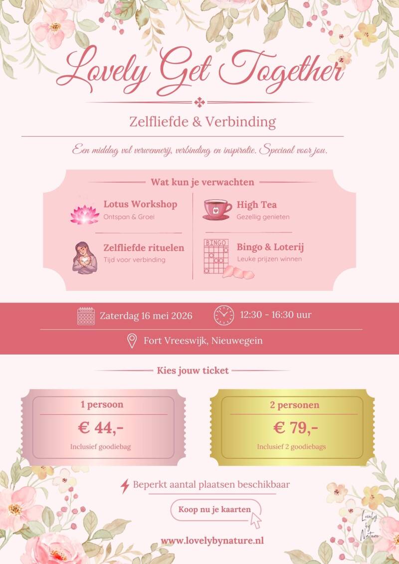 Tijdens Lovely Get Together neem je bewust tijd voor jezelf, geniet je van selfcare rituelen, een lotus workshop met high tea, verrassingen, gezelligheid én een luxe goodiebag.